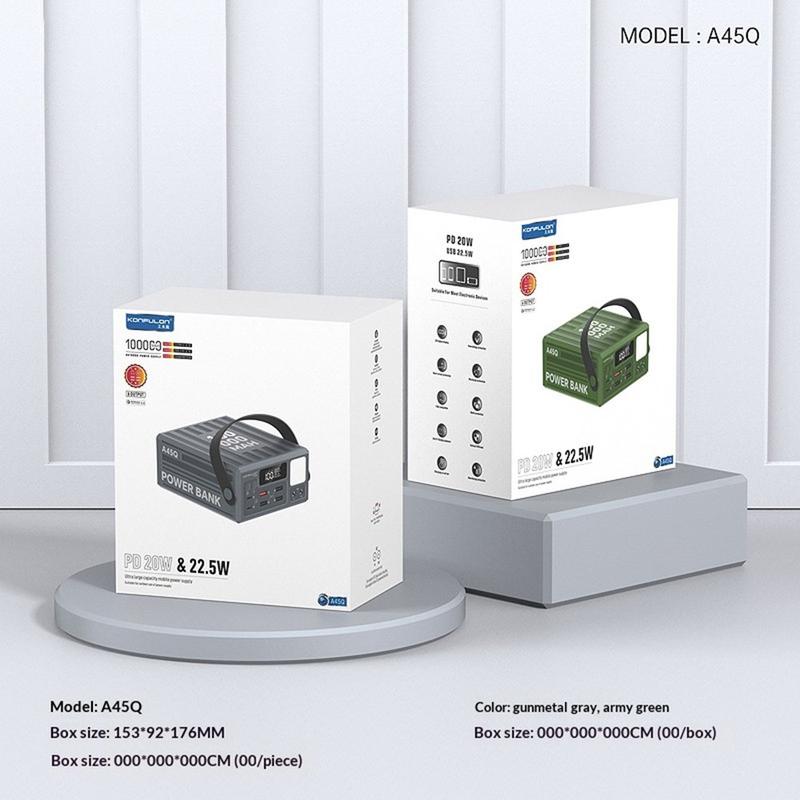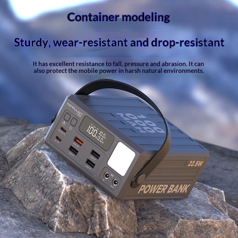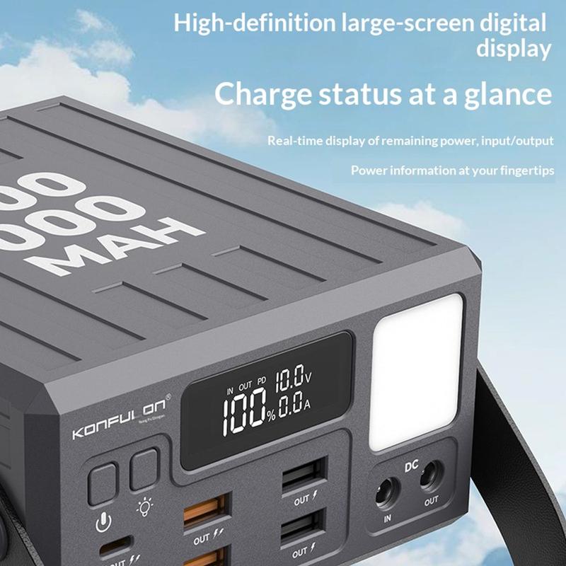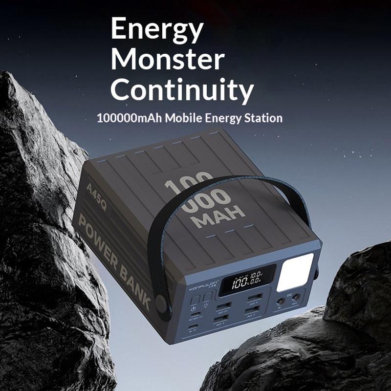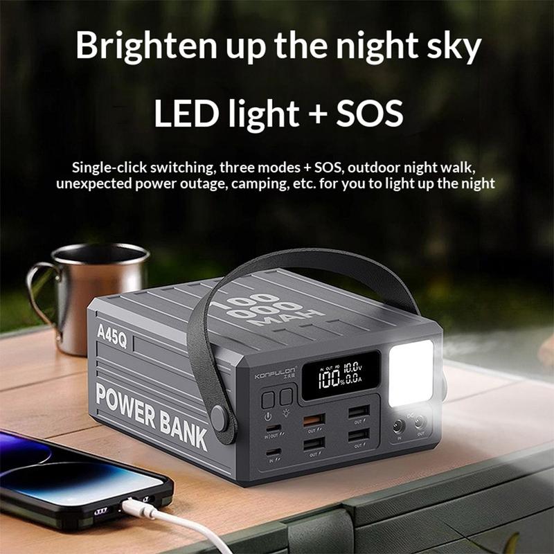 Laad meer apparaten langer op met de Konfulon A45Q powerbank van 100000mAh. Dit oplaadstation met hoge capaciteit is ontworpen voor op reis, buitengebruik, kamperen en als noodstroomvoorziening thuis, en biedt betrouwbare energieopslag met 7 uitgangen voor het gemakkelijk opladen van meerdere apparaten.