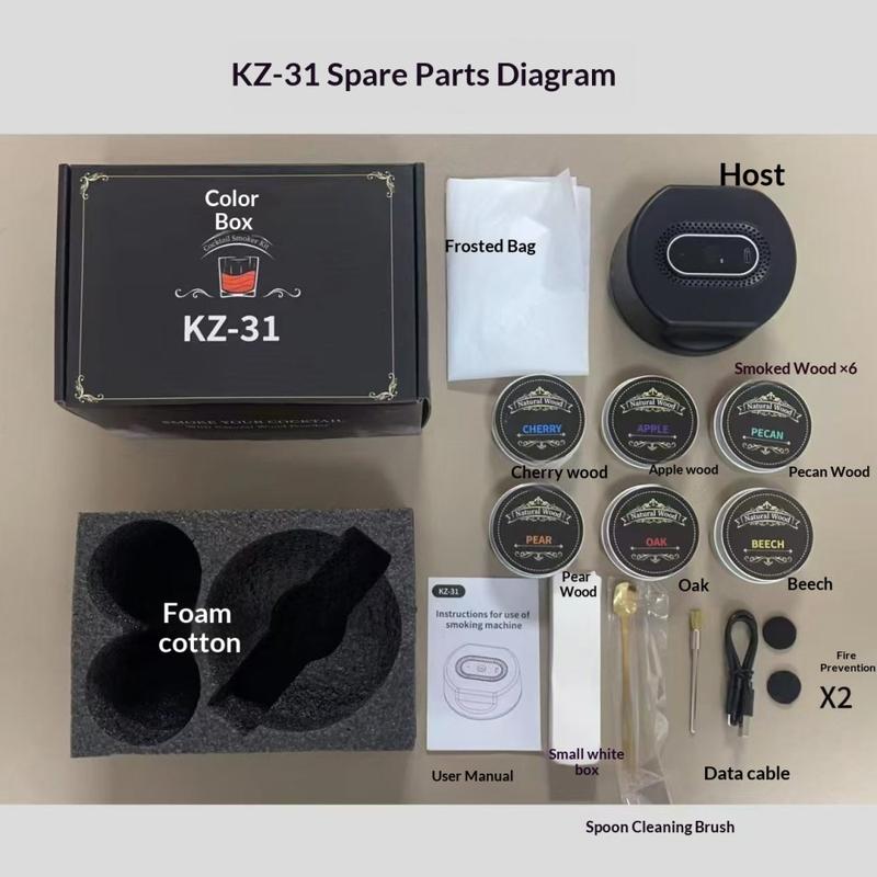 De KZ-31 biedt een eenvoudige manier om premium gerookte drankjes te maken met consistente resultaten en eenvoudige bediening. Met meerdere houtsnippersmaken, een oplaadbaar ontwerp en een complete accessoireset is het een uitstekende keuze voor iedereen die thuis een professionele cocktailervaring wil beleven.