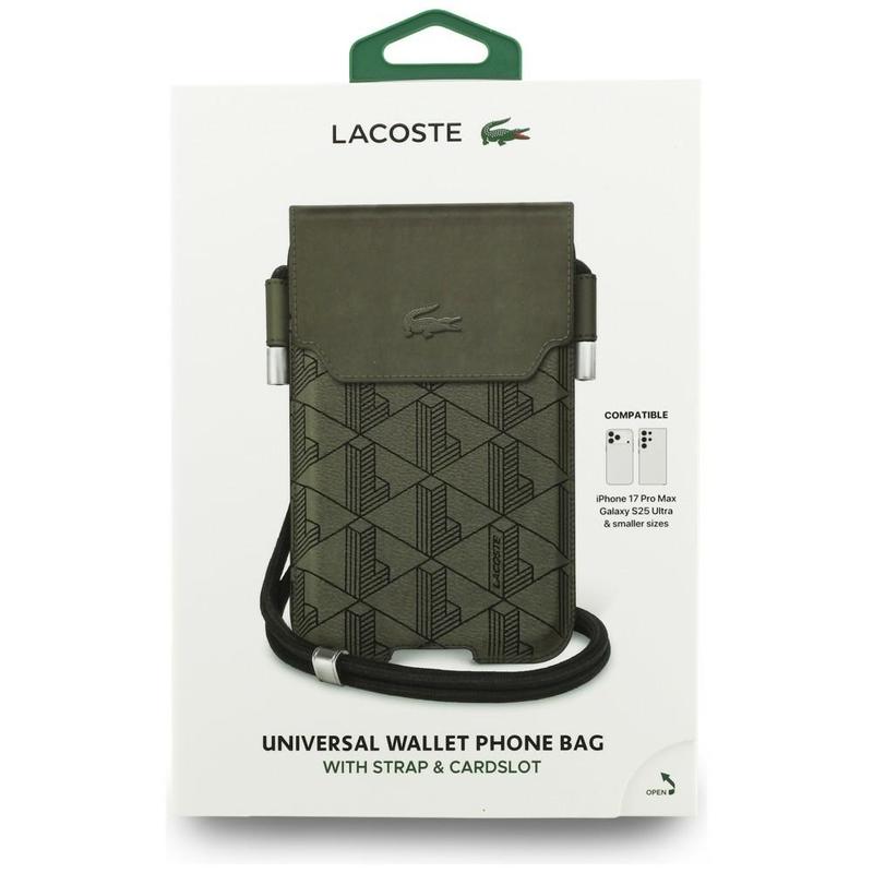 De tas is gemaakt van polyurethaan met textuur en is voorzien van het kenmerkende monogram van het merk en het iconische geborduurde krokodillenlogo. Een magnetische klepsluiting houdt je telefoon veilig op zijn plaats, terwijl doordachte details zorgen voor gemakkelijke toegang en naadloos dagelijks gebruik.