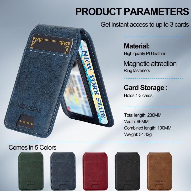 De LC.IMEEKE magnetische kaarthouder is een slank en stijlvol telefoonaccessoire dat veilige kaartopslag combineert met dagelijks gemak. Hij is ontworpen om magnetisch aan compatibele telefoons te bevestigen en houdt je essentiële pasjes binnen handbereik met behoud van een lichtgewicht profiel. Met een verstelbare kickstand voor hands-free kijken en ingebouwde RFID-bescherming, is deze portemonnee ideaal voor dagelijks gebruik - of je nu op reis bent of thuis aan het relaxen bent.