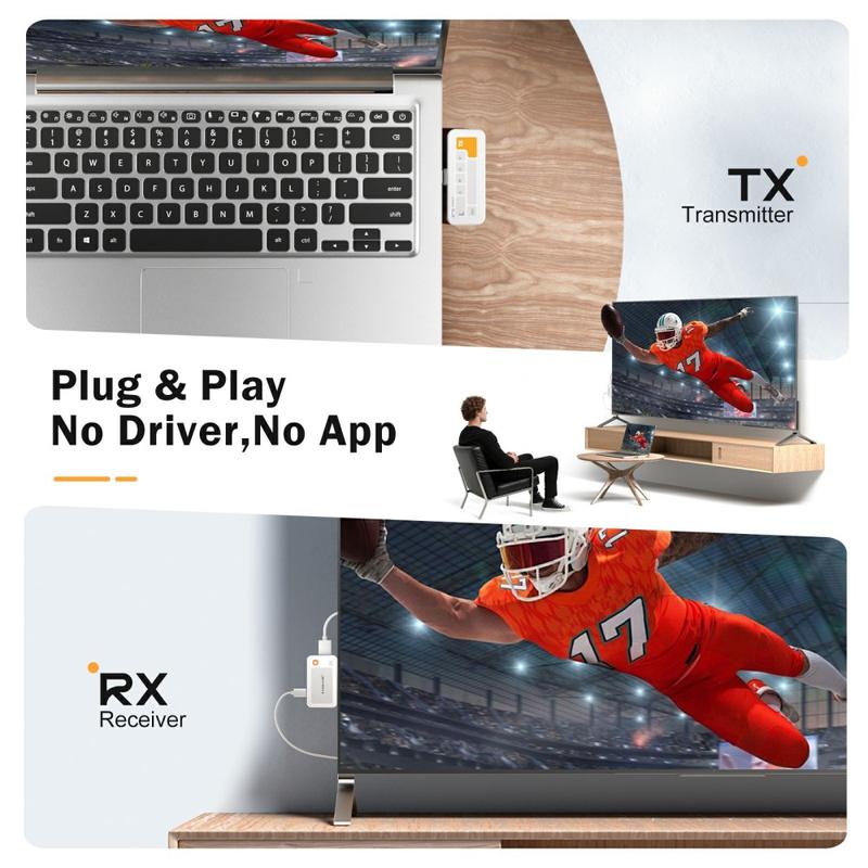 De USB-C zender vereist geen extra installatie van stuurprogramma's of complexe configuratie. Sluit gewoon de zender en ontvanger aan en het systeem is binnen enkele seconden klaar voor gebruik, waardoor het ideaal is voor professionele en tijdgevoelige omgevingen.