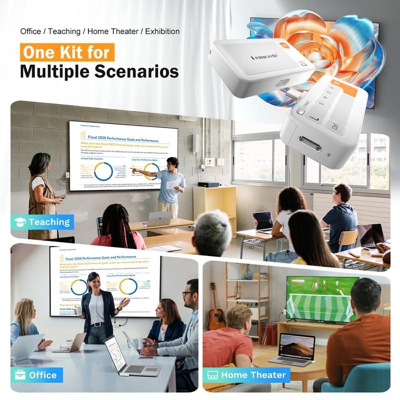 Met ondersteuning van 1080P high-definition resolutie levert de Lemorele P400 heldere beelden met gesynchroniseerde audio en video. Dit zorgt voor een soepele en meeslepende kijkervaring voor presentaties, video's en het delen van schermen.