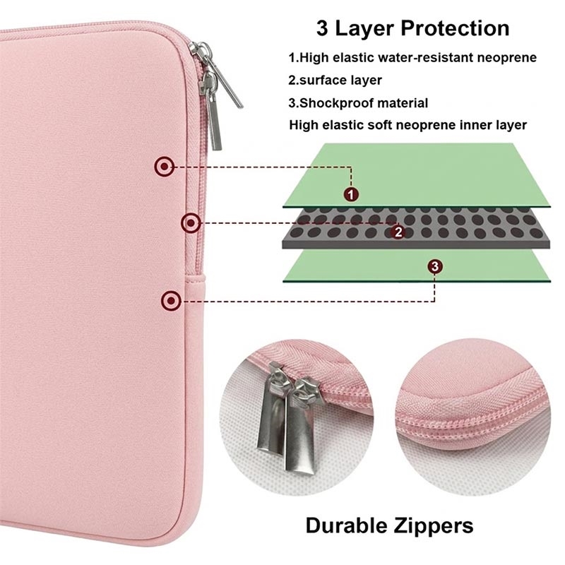 Deze laptophoes is gemaakt van schuim en spandex-materialen en biedt gelaagde bescherming voor uw apparaat. De gewatteerde structuur helpt de impact van kleine schokken en stoten te verminderen, terwijl het ook het oppervlak van uw laptop beschermt tegen krassen en stof. Dit maakt het een praktische oplossing voor gebruikers die eenvoudige dagelijkse bescherming willen zonder al te veel extra gewicht.