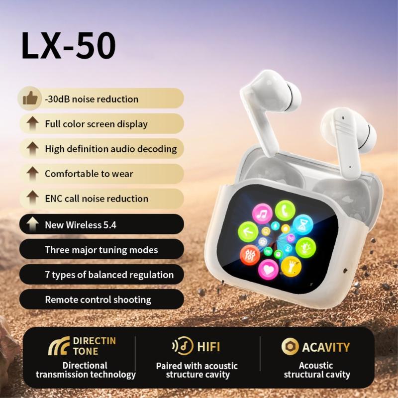 • LX-50 True Wireless oortelefoon met oplaadetui met aanraakscherm - ANC+ENC, Bluetooth 5.4