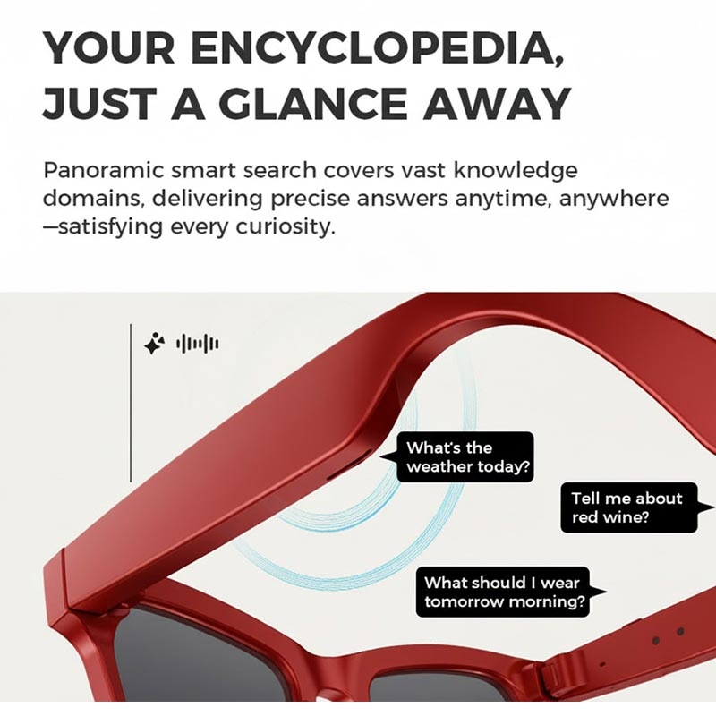 AI-functies, zoals objectherkenning, spraakopdrachten, dialooginteractie en real-time vertaling, vergroten het gebruiksgemak en zorgen voor naadloze communicatie in verschillende talen. Dubbele luidsprekers met onafhankelijke versterkers bieden rijke, heldere audio voor zowel het afspelen van muziek als gesprekken, terwijl microfoons met ruisonderdrukking zorgen voor heldere spraakkwaliteit.
