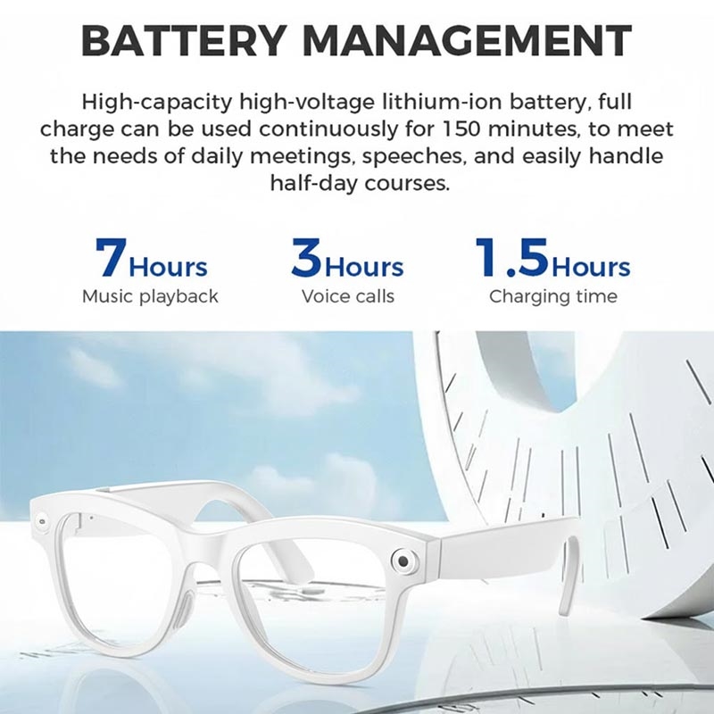 De M01S AI slimme bril combineert intelligente vertaling, HD-opname, meeslepende audio en spraakinteractie in één slank draagbaar apparaat. De bril is uitgerust met een Sony IMX219 500W camera en maakt foto's van hoge kwaliteit en vloeiende 1080p 30fps video. Of je nu je dag documenteert of handsfree content opneemt, de M01S levert helderheid en stabiliteit met ingebouwde video-optimalisatie.