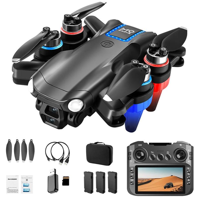 M9 Borstelloze Motor FPV Drone - opvouwbare quadcopter met dubbele HD-camera's, optische stroming, obstakelvermijding, schermcontroller en 3 batterijen