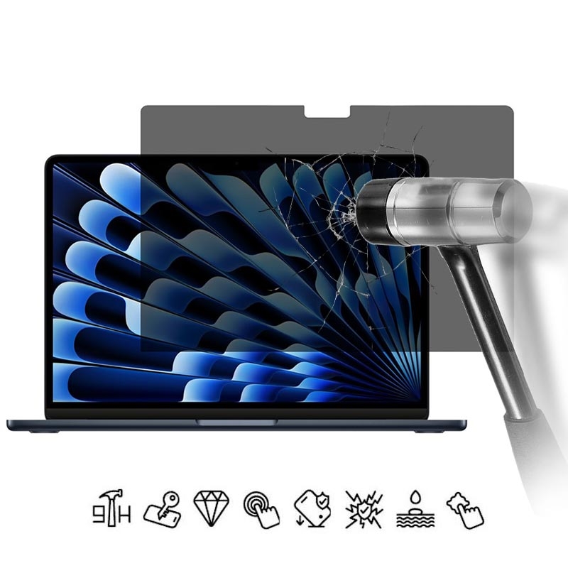 Privacy Glazen Screenprotector voor MacBook Air 13" 2022/2024/2025/2026 - Anti-gluren, Volledige Dekking, Krasbestendig & Stootvast