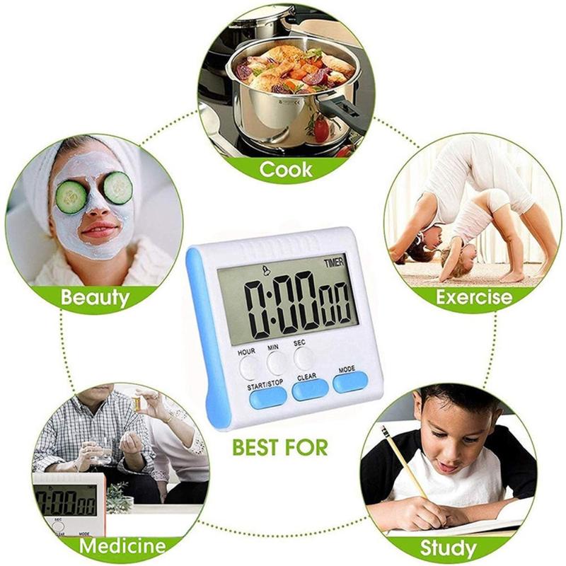 Deze magnetische grote lcd digitale keukenwekker houdt de tijd nauwkeurig bij met functies voor zowel aftellen als aftellen. Dankzij het extra grote display, het luide alarm en de veelzijdige bevestigingsopties is dit een essentieel hulpmiddel voor koken, bakken, trainen, studeren of tijdgevoelige taken thuis of op kantoor.