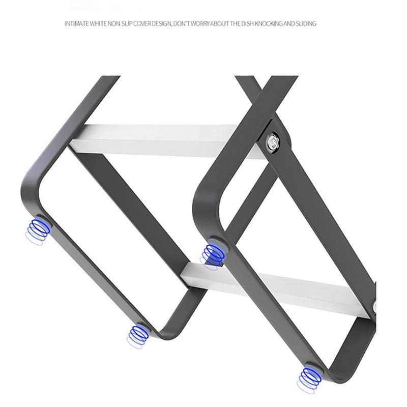 Dit metalen afdruiprek biedt de perfecte mix van hygiëne, duurzaamheid en moderne stijl. Het compacte, rechtopstaande ontwerp helpt ruimte te besparen en schoner en veiliger servies op te bergen, waardoor het ideaal is voor huizen van elke grootte.