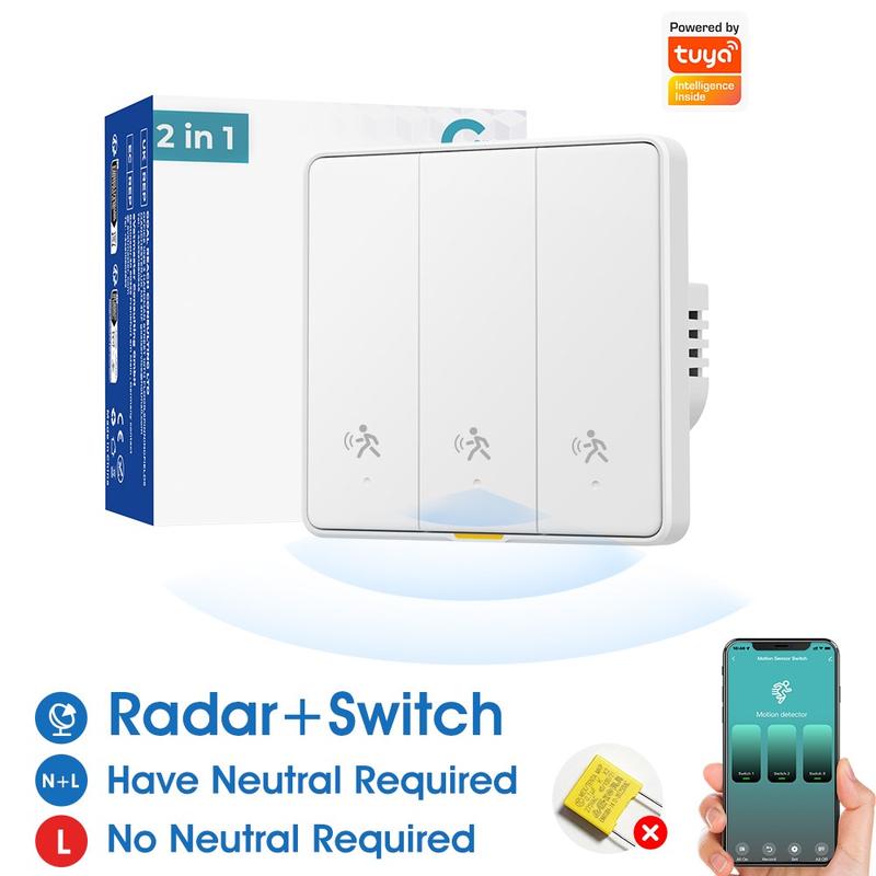 MG-KG126 Zigbee Radar Slimme Schakelaar / Menselijke Sensor Wandschakelaar, Tuya-Geschikte Afstandsbediening - 3 Gang, 1 Weg