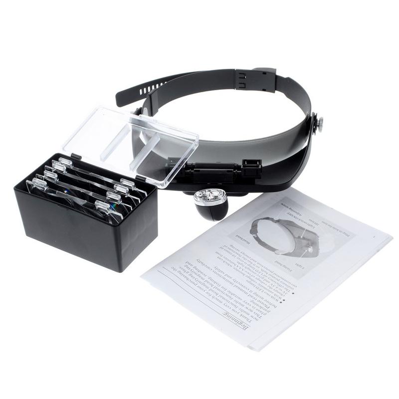 MG81001-A 2-LED hoofdbandloep met 4 lenzen - handvrije loep voor lezen, elektronicaherstel, juwelen beoordelen en horlogewerk