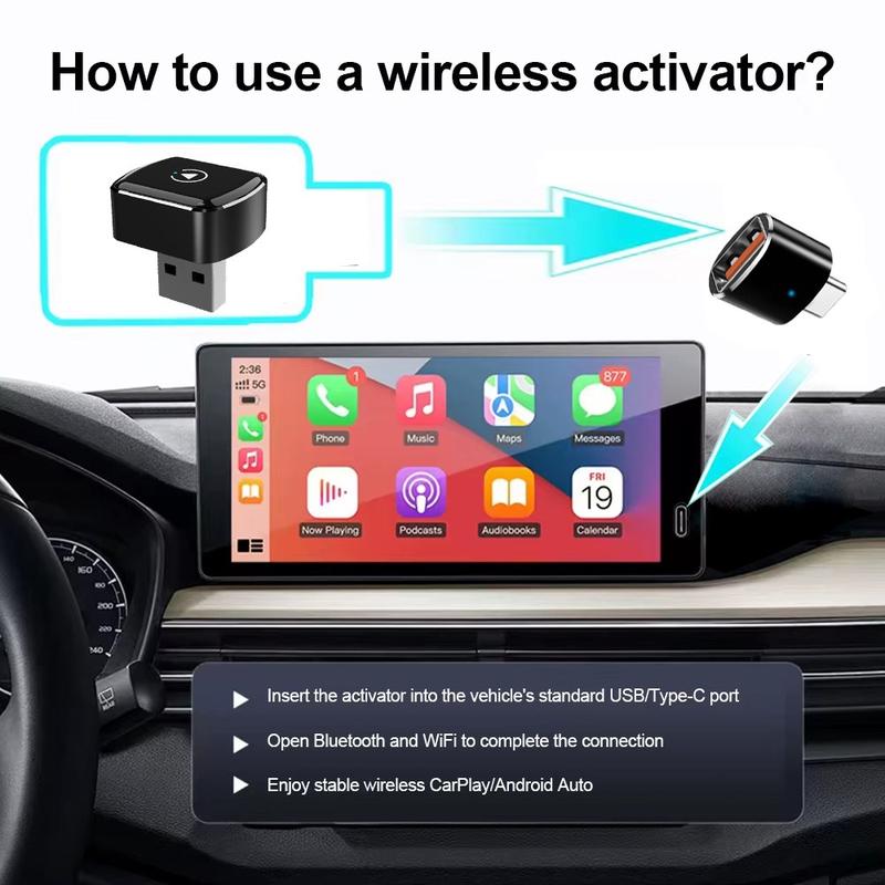 - Functie: Zet bedrade CarPlay/Android Auto om naar draadloos