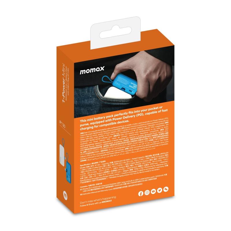 • Momax 1-Power Mini Pop Art 5000mAh Power Bank / Draagbare Lader met USB-C Stekker, USB-C Kabel, USB-C Poort - 20W