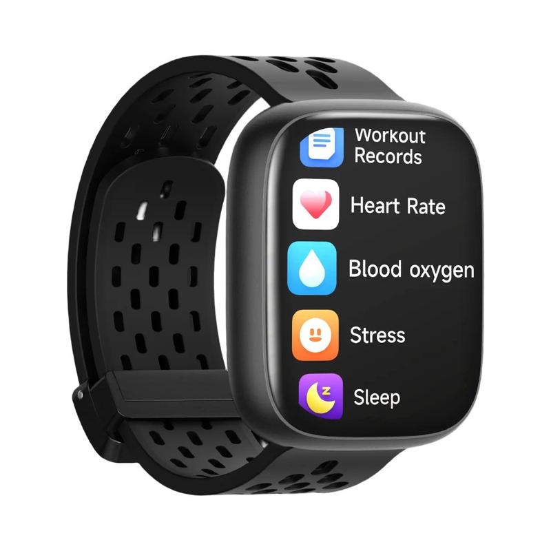 - Gezondheidsmonitoring: hartslag, SpO2 en stressregistratie voor dagelijkse wellness-inzichten