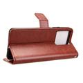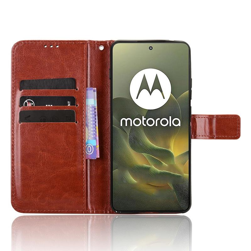 Geef je nieuwe Motorola Edge 70 een verfijnde, vintage look en vervang je alledaagse portemonnee. De buitenkant van polyurethaan met Crazy Horse-textuur wordt gecombineerd met een schokabsorberend TPU-omhulsel dat bescherming biedt tegen vallen en krassen, terwijl slimme vakjes pasjes en geld op orde houden.
