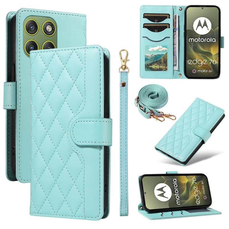 • Luxe Gewatteerd Portemonnee Hoesje met Schouder & Polsband voor Motorola Edge 70 - Beschermende Hoes met Ruitpatroon