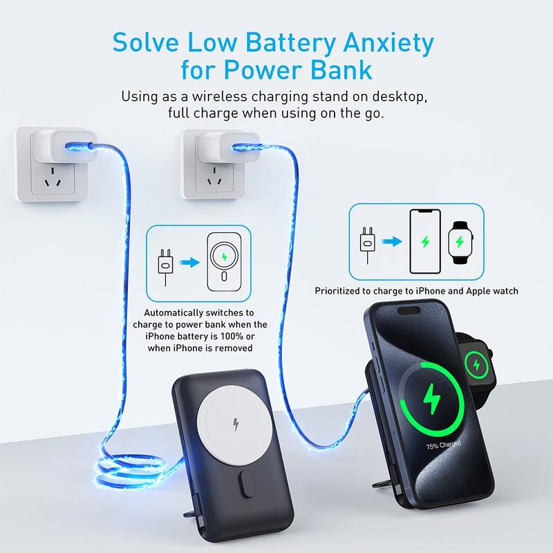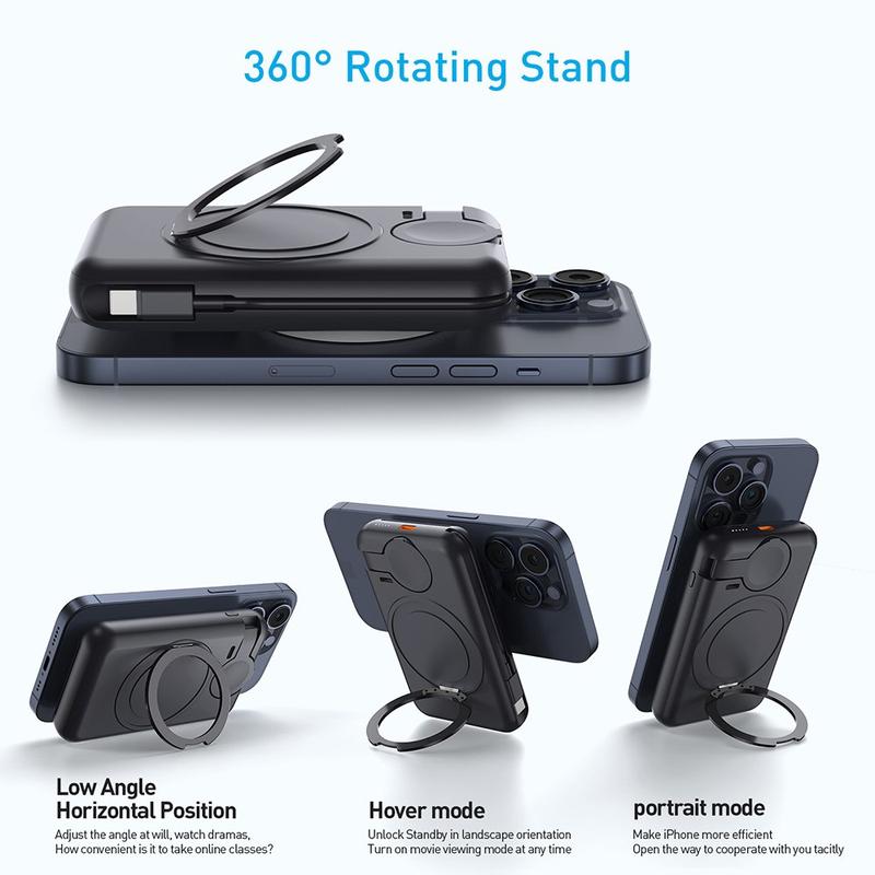 Het onderscheidt zich ook omdat het draagbaarheid combineert met eersteklas functionaliteit. De magnetische oplaadfunctie maakt het plaatsen van de telefoon eenvoudiger, de ingebouwde kabel vermindert rommel en de draaibare standaard voegt een niveau van gebruiksgemak toe dat veel gewone powerbanks niet bieden. Voor gebruikers die een veelzijdigere en verfijndere draagbare oplaadoplossing willen, is dit een zeer sterke optie.