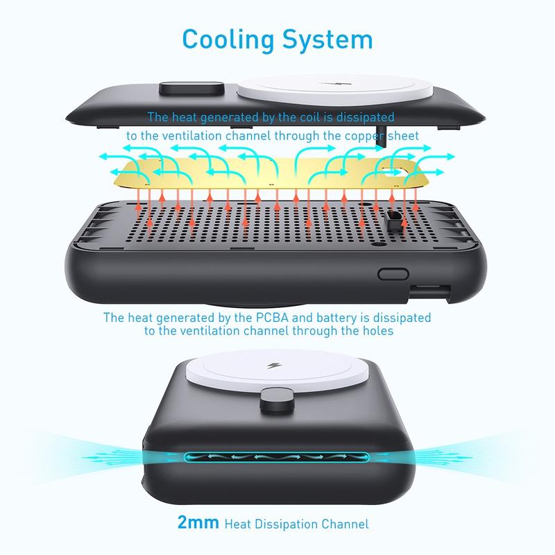 - Warmteafvoerkanalen van 2 mm en ventilatieopeningen zorgen voor stabielere oplaadprestaties