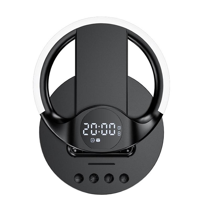 Meer dan alleen een oplader - het werkt ook als een digitale klok en telefoonstandaard. Kies uit vijf omgevings-LED-achtergrondverlichtingsstanden (wit, roze wit, rood, ijsblauw, fantasiekleur) om bij je stemming of decor te passen.