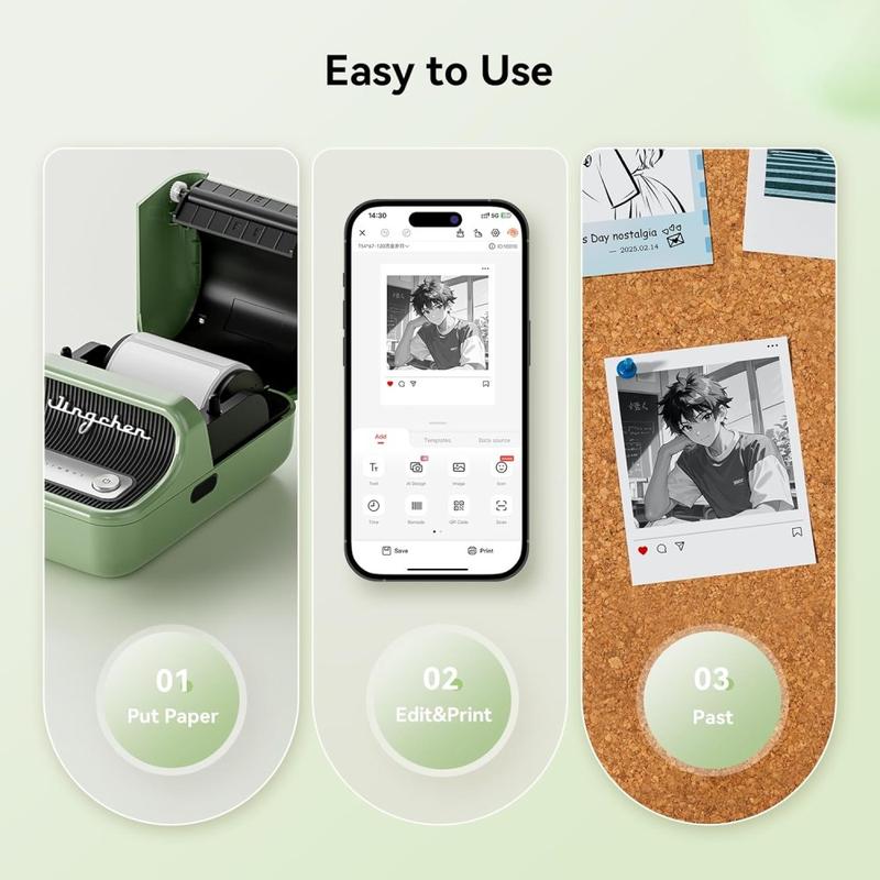 - Oplaadbaar & Efficiënt - Uitgerust met een 1500mAh batterij die uren printen per lading biedt; laadt gemakkelijk op via Type-C in 3-4 uur.