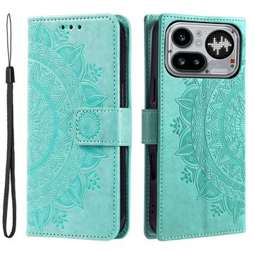 Nothing Phone (4a) Pro Mandala-portemonneehoesje met polsbandje - mintgroen