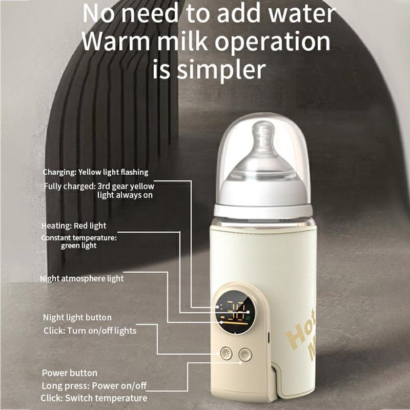 Draagbare Babyflesverwarmer - Slimme temperatuurregeling, 360° verwarmingshoes met USB/Type-C snel opladen