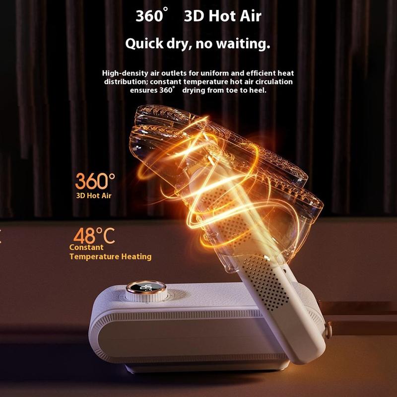 - 360° omringende warmtecirculatie voor snel en gelijkmatig drogen van schoeisel