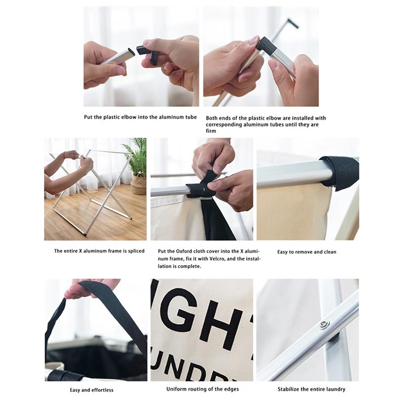 Opvouwbare 3-Cell Wasmand - Waterdichte Oxford Doek Wasmand met Aluminium Frame