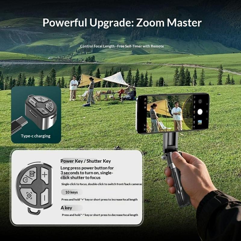 Met de meegeleverde Bluetooth 5.2-afstandsbediening kun je foto's en video's maken tot op 10 meter afstand. Het ondersteunt schakelen tussen voor- en achtercamera, zoomen en scherpstellen, waardoor je volledige controle hebt zonder je telefoon aan te raken.