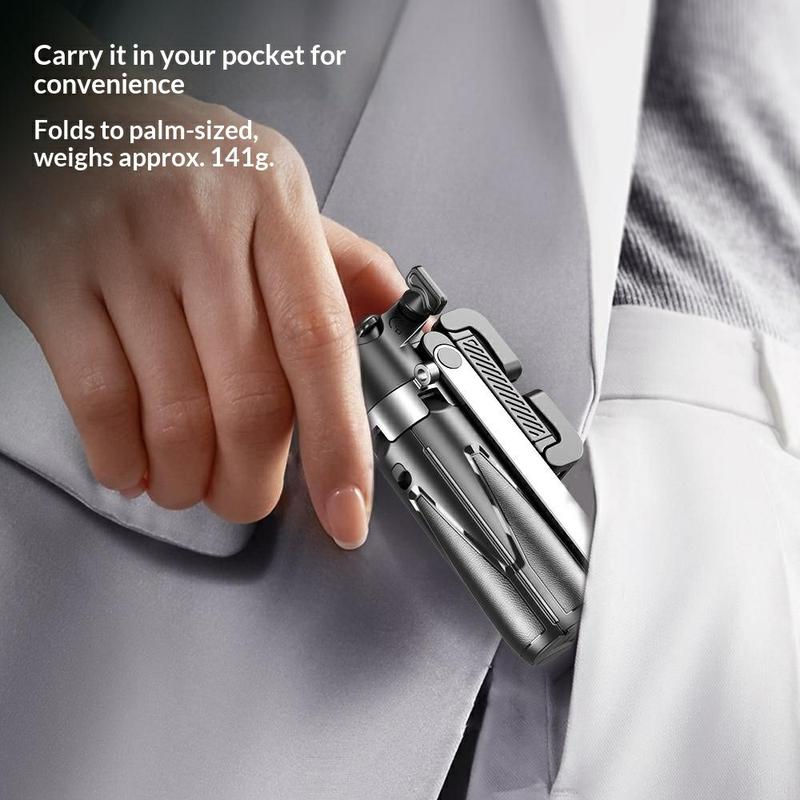 Het inklapbare ontwerp is uitschuifbaar van 11,7 cm tot 41,5 cm, waardoor je hem gemakkelijk in een tas of rugzak kunt opbergen. Het lichtgewicht ontwerp zorgt voor comfortabel gebruik tijdens reizen en buitenopnamen.