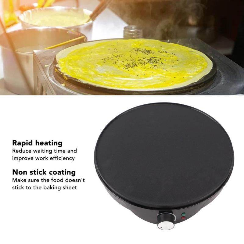 • 12" Elektrische crêpe Maker - Pannenkoekenplaat met antiaanbaklaag 1000W, slimme temperatuurregeling, EU-stekker