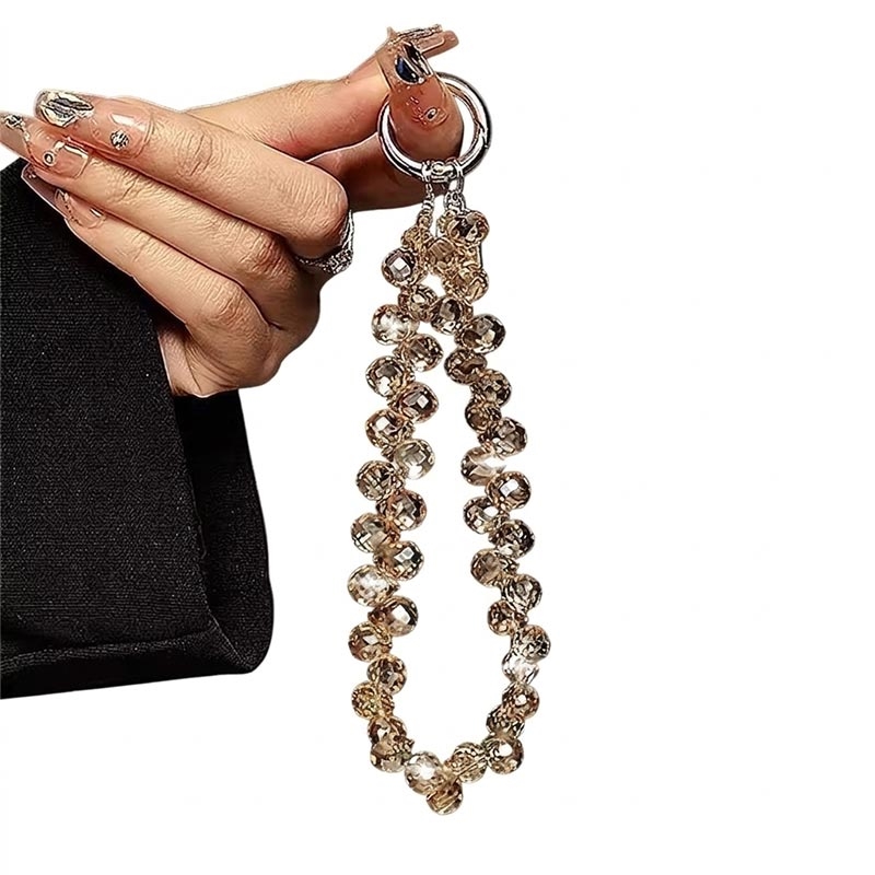 14cm lange telefoonketting met kristallen kralen - polsbandje/sleutelhanger met doorzichtig bevestigingslipje