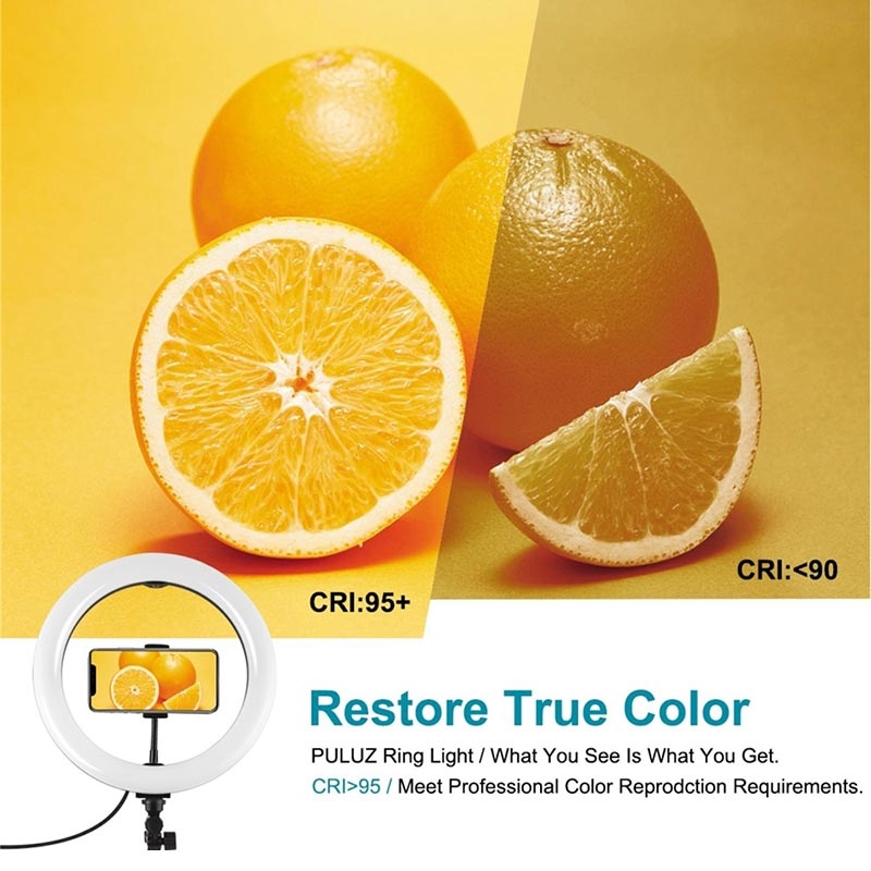 De ringverlichting is gemaakt van 2x60pcs energiebesparende LED-parels, de warmteafvoer is uitstekend, constante stroomaandrijving en hoge kleurweergave, verzacht de lichtbron en verbetert de huidtint in portretfotografie