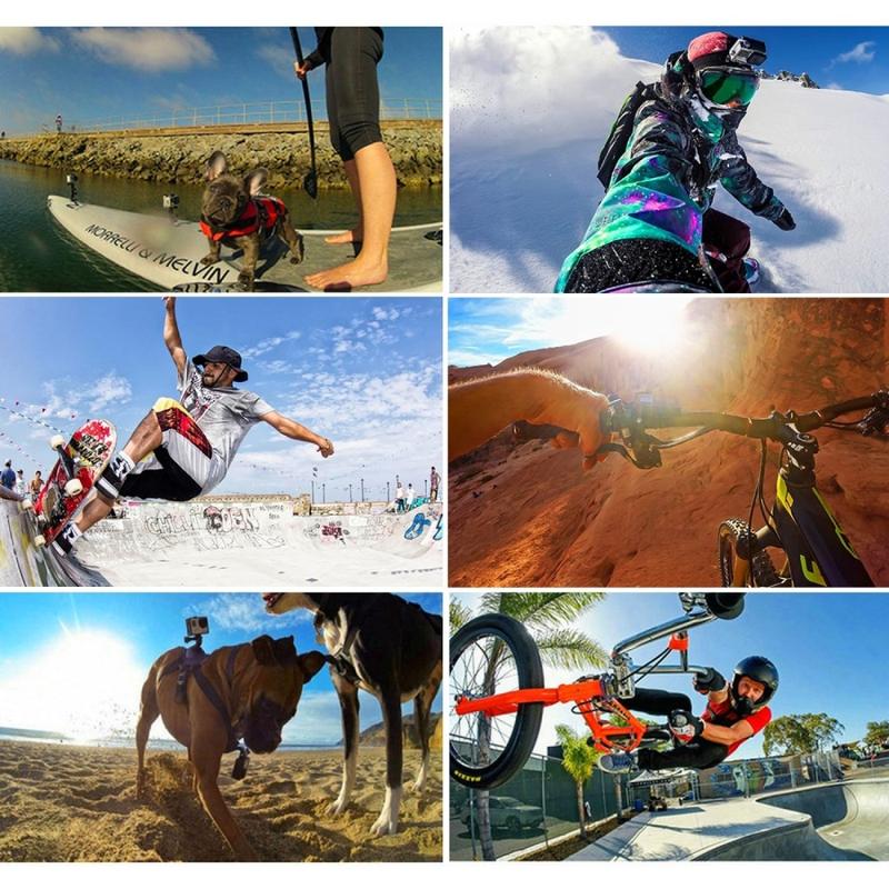 Compatibel met de GoPro Hero-serie en andere actiecamera's die gebruikmaken van standaard GoPro-achtige bevestigingen. Ideaal voor activiteiten zoals surfen, fietsen, skiën, skateboarden, snorkelen, wandelen en meer.