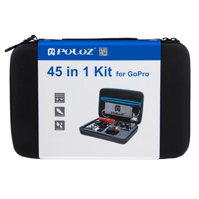 PULUZ PKT10 45-in-1 Accessoireset voor actiecamera's - Grote opbergkoffer, borst- en hoofdbevestigingen, drijvende handgreepset voor GoPro