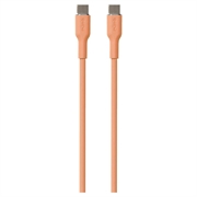 • Zachte kabel met twee USB-C connectoren van zacht aanvoelende siliconen in abrikooskleur (oranje).