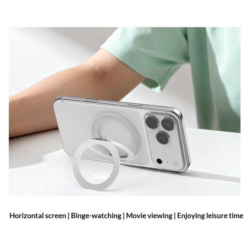 De Q11 ultradunne drievoudige magnetische ringstandaard is een slanke telefoongreep en standaard die is ontworpen voor flexibel dagelijks gebruik zonder extra ruimte in te nemen. Met een drievoudige vouwstructuur kan hij compact worden ingeklapt als hij niet wordt gebruikt, terwijl je met de 360° rotatie snel kunt wisselen tussen staande en liggende weergave. De zelfklevende achterkant zorgt voor een snelle en veilige installatie en de ingebouwde magneet zorgt voor compatibiliteit met magnetische bevestigingen en accessoires.