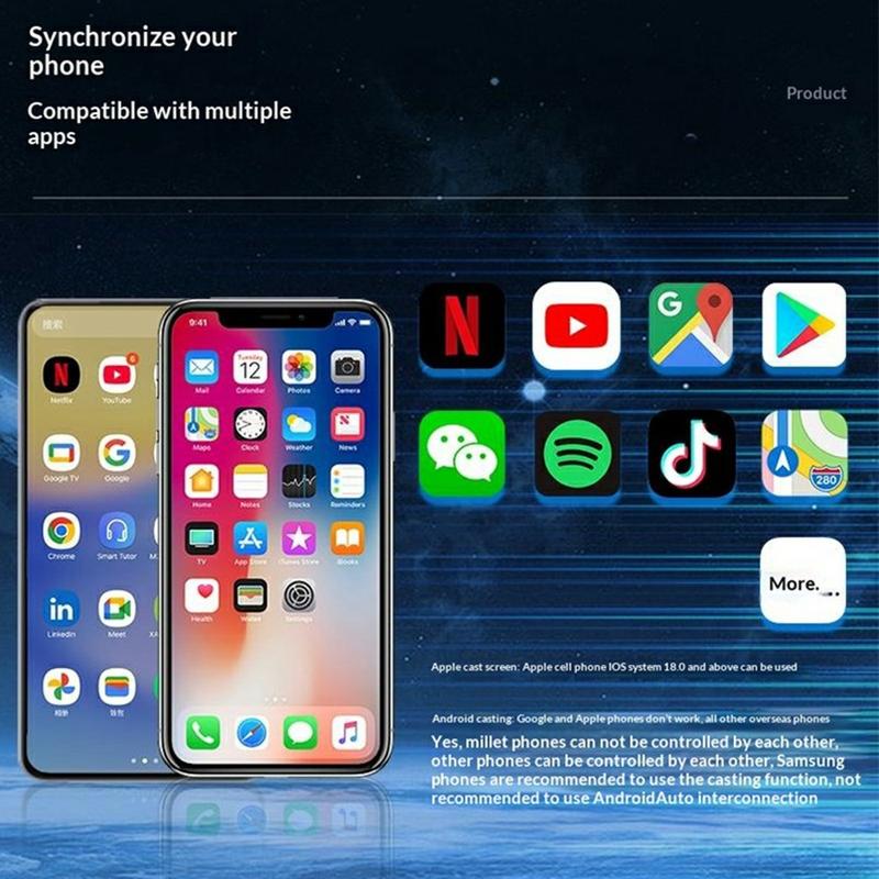 Met Bluetooth 4.2 en dual-band wifi biedt het een stabiele verbinding voor dagelijks gebruik. Dankzij het plug-and-play-ontwerp is de installatie snel voltooid en werkt het apparaat, eenmaal aangesloten, met de originele bedieningselementen, het touchscreen en de microfoon van uw auto voor een naadloze ervaring in de auto.