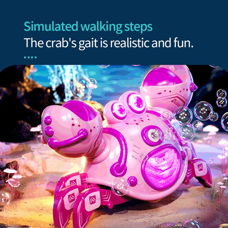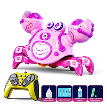 Q227 Op afstand bestuurbare mecha-krabrobot voor kinderen - 2,4 GHz RC-speelgoed dat bellen blaast en water spuit, met led-verlichting, muziek en 360°-rotatie