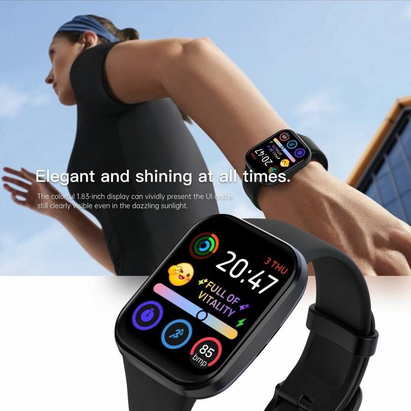 De Q23Pro smartwatch heeft een groot kleurendisplay van 1.83 inch, soepele prestaties en betrouwbare gezondheids- en fitnesstracking voor dagelijks gebruik. Het ontwerp heeft een slanke geïntegreerde behuizing en 3D-gebogen glas en ondersteunt Bluetooth-bellen, muziekbediening en meer dan 100 aanpasbare wijzerplaten. Met een lange batterijduur, uitgebreide gezondheidsmonitoring en brede compatibiliteit met Android en iOS is dit een praktische smartwatch om verbonden en actief te blijven.