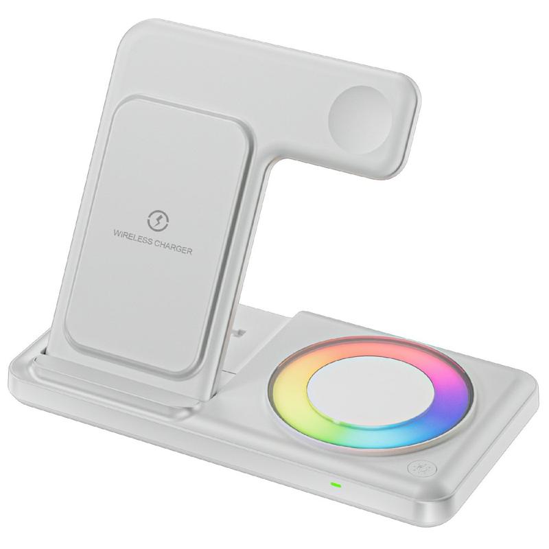 Q50D 4-in-1 opvouwbare draadloze oplader - 15W snellaadstation met RGB omgevingslicht
