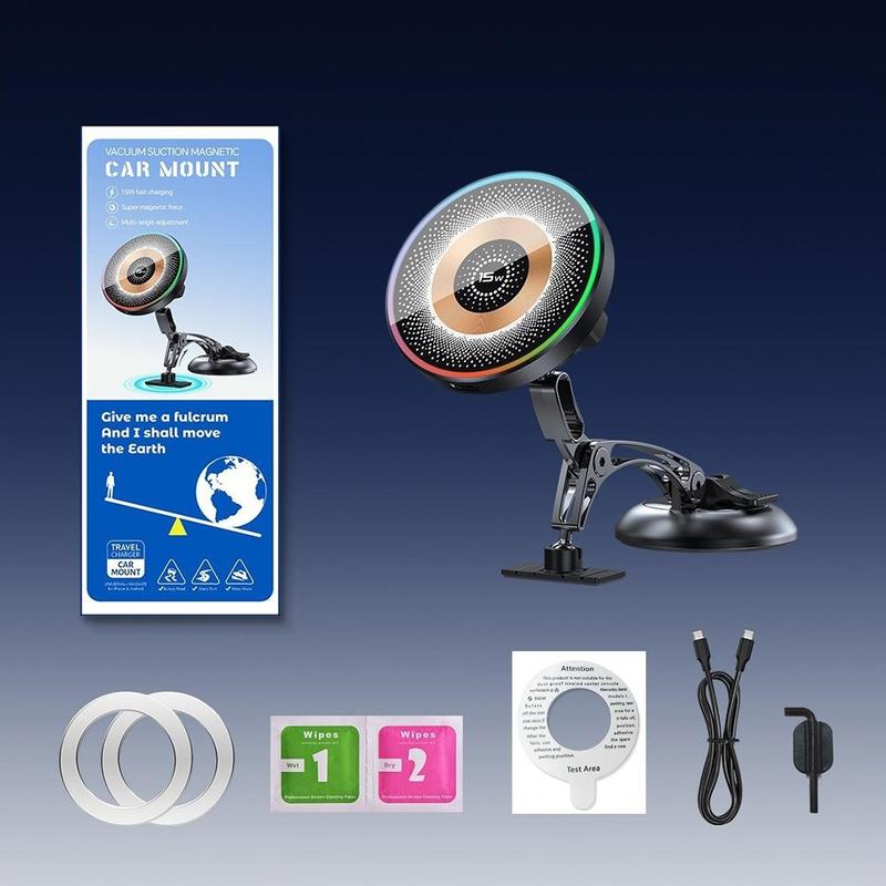 QH-AKD248 Magnetische autohouder met 15 W draadloos opladen en vacuümzuignap voor op het dashboard of de voorruit