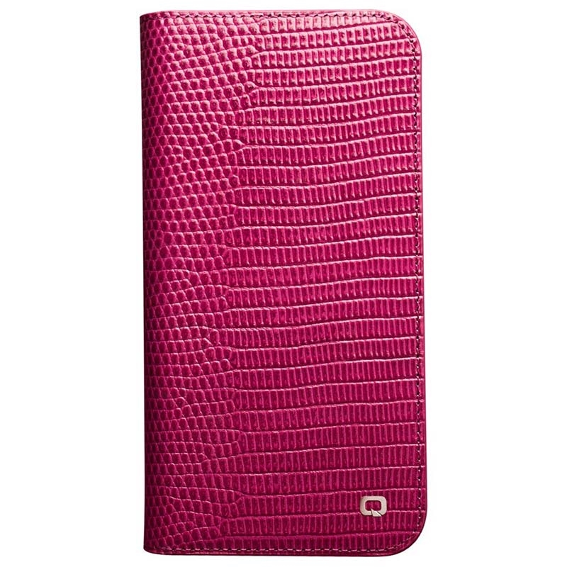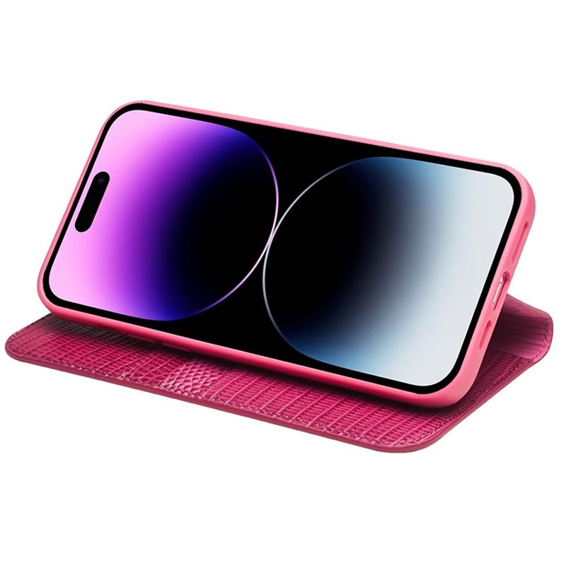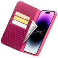 Qialino iPhone 14 Pro Wallet Leren Hoesje - Krokodil - Hot Pink