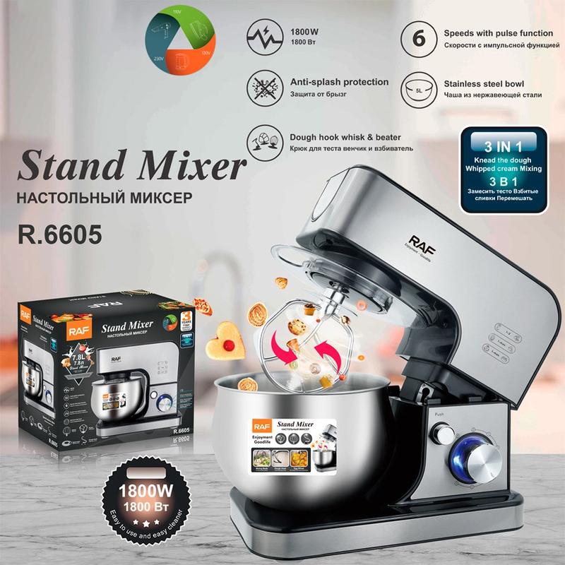 De RAF R6605 automatische deegmixer is een krachtig en veelzijdig keukenapparaat dat ontworpen is om het dagelijks koken en bakken te vereenvoudigen. Met een robuuste 1800W motor, een grote roestvrijstalen kom van 5 liter en meerdere mixhulpstukken kan hij gemakkelijk kneden, mengen, opkloppen en mixen voor een breed scala aan recepten.
