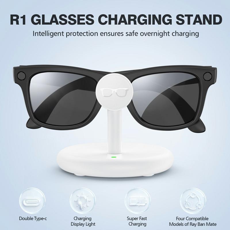 Deze oplaadstandaard voor AR Smart Glasses levert veilig, efficiënt en snel opladen voor je draagbare apparaten. Ontworpen voor Ray-Ban Wayfarer, Skyler, Headliner, en Oakley HSTN modellen, het houdt je bril veilig op zijn plaats terwijl het snelle, intelligente stroomvoorziening biedt via USB-C.