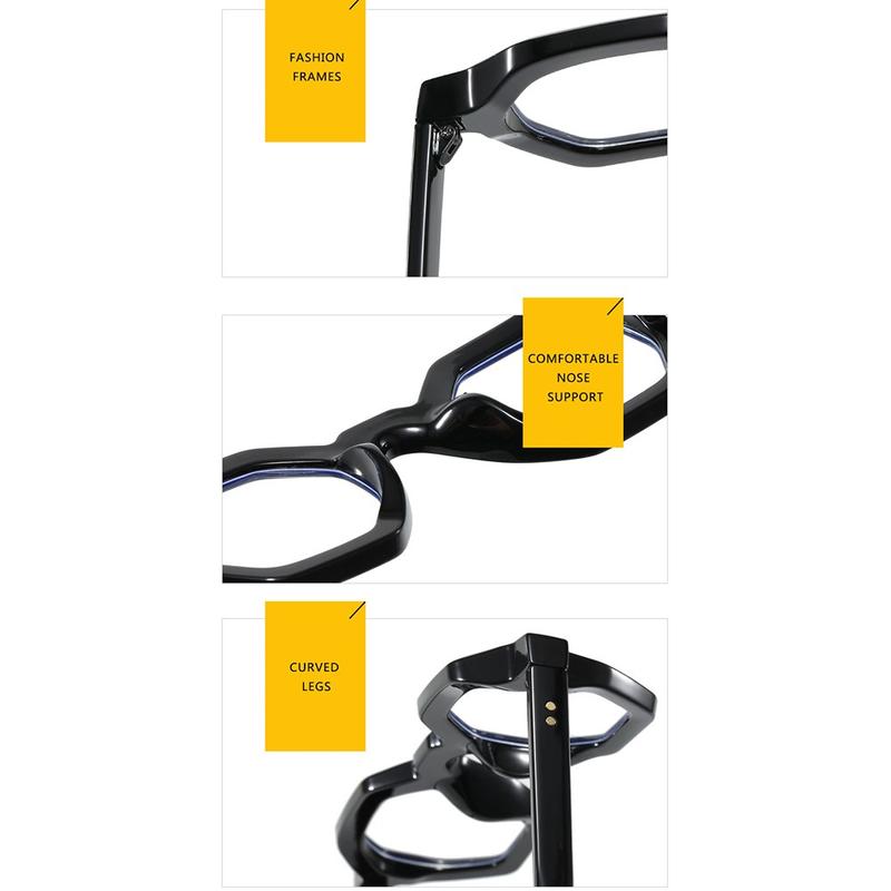 Deze retro polygoonbril combineert een modieus ontwerp met cruciale oogbescherming tegen blauw licht. Door het ongemak dat gepaard gaat met beeldschermwerk te verlichten, helpen ze de productiviteit te verhogen, hoofdpijn te verminderen en de visuele helderheid te behouden. De lichtgewicht constructie en geïntegreerde neuskussentjes zorgen ook voor urenlang draagcomfort, waardoor ze een handige toevoeging aan je dagelijks leven zijn.