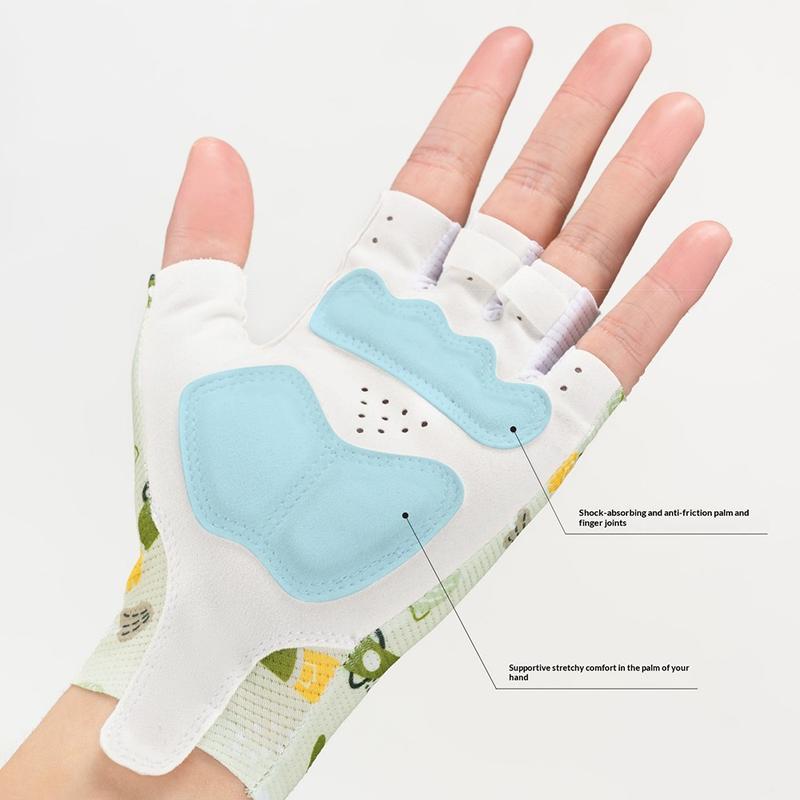 Rockbros Kinderfietshandschoenen met cartoonpatroon / Ademende halfvingerfietshandschoenen met schokabsorberende palm