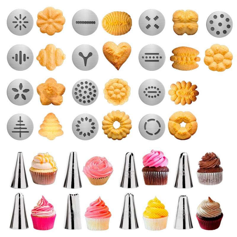 - Complete bakset met 1 koekjesperspistool, 13 koekjesschijven en 8 spuitmondjes