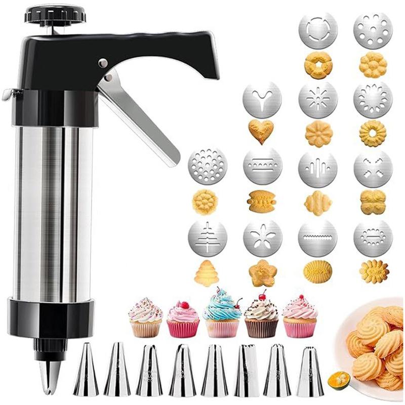 Dit roestvrijstalen koekjesperspistool is een praktisch en creatief bakgereedschap waarmee je met precisie en gemak koekjes kunt vormen en desserts kunt versieren. Met meerdere schijven en spuitmondjes erbij kun je experimenteren met verschillende patronen en decoratieve stijlen voor koekjes, taarten en gebak. Duurzaam, gebruiksvriendelijk en eenvoudig schoon te maken: een betrouwbare aanwinst voor elke thuisbakkerskeuken.
